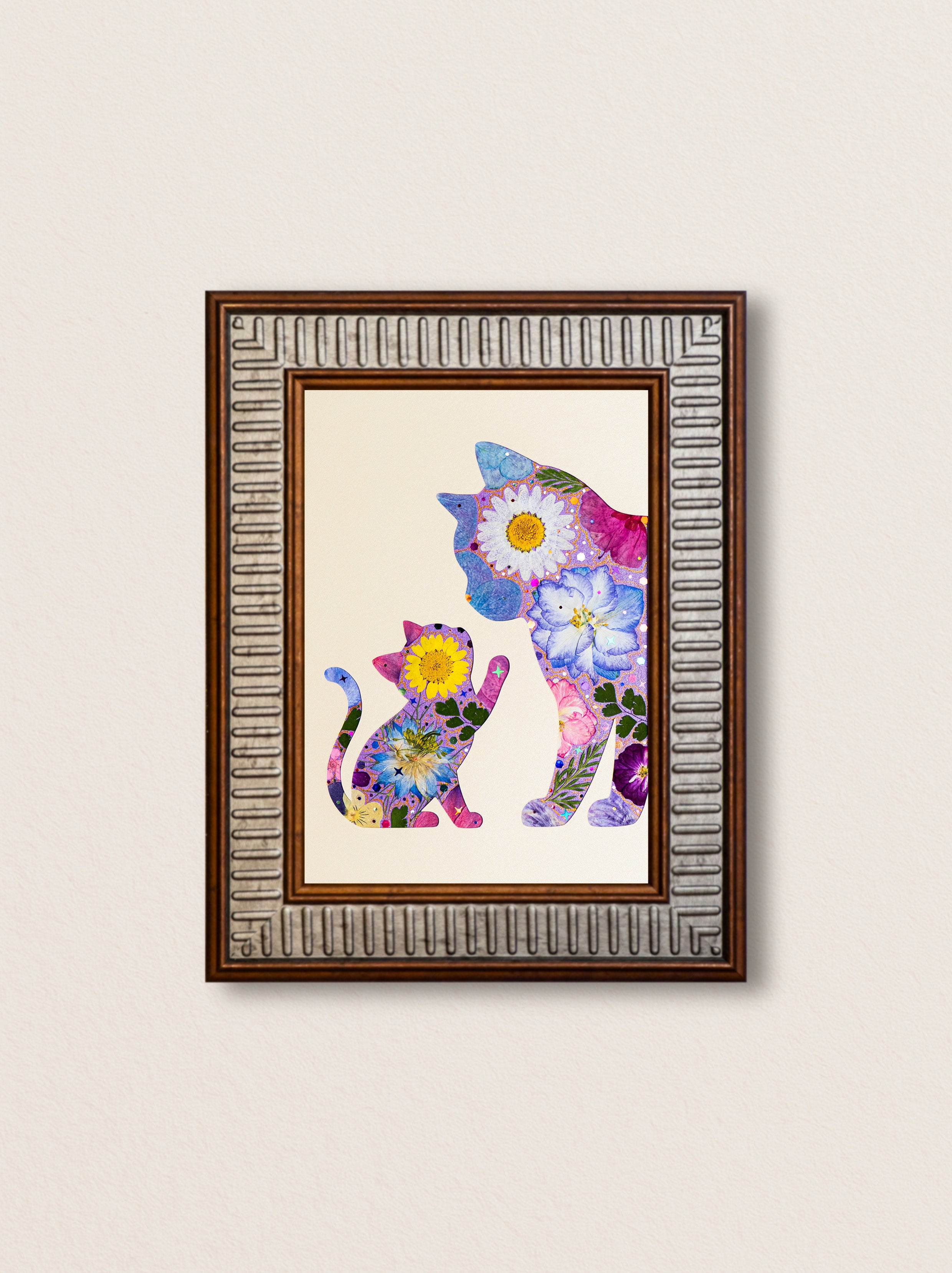 We use premium, hand-pressed flowers curated to retain their vibrant colors for years. As with all natural art, a gentle, graceful fading over time is part of the organic process—think of it as the artwork’s own story. To keep your piece beautiful, simply avoid direct sunlight and high humidity.