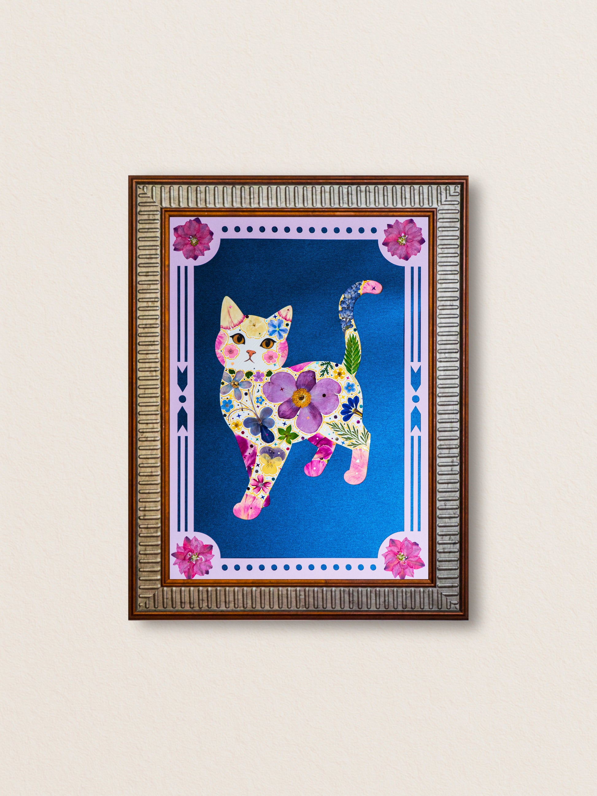 We use premium, hand-pressed flowers curated to retain their vibrant colors for years. As with all natural art, a gentle, graceful fading over time is part of the organic process—think of it as the artwork’s own story. To keep your piece beautiful, simply avoid direct sunlight and high humidity.